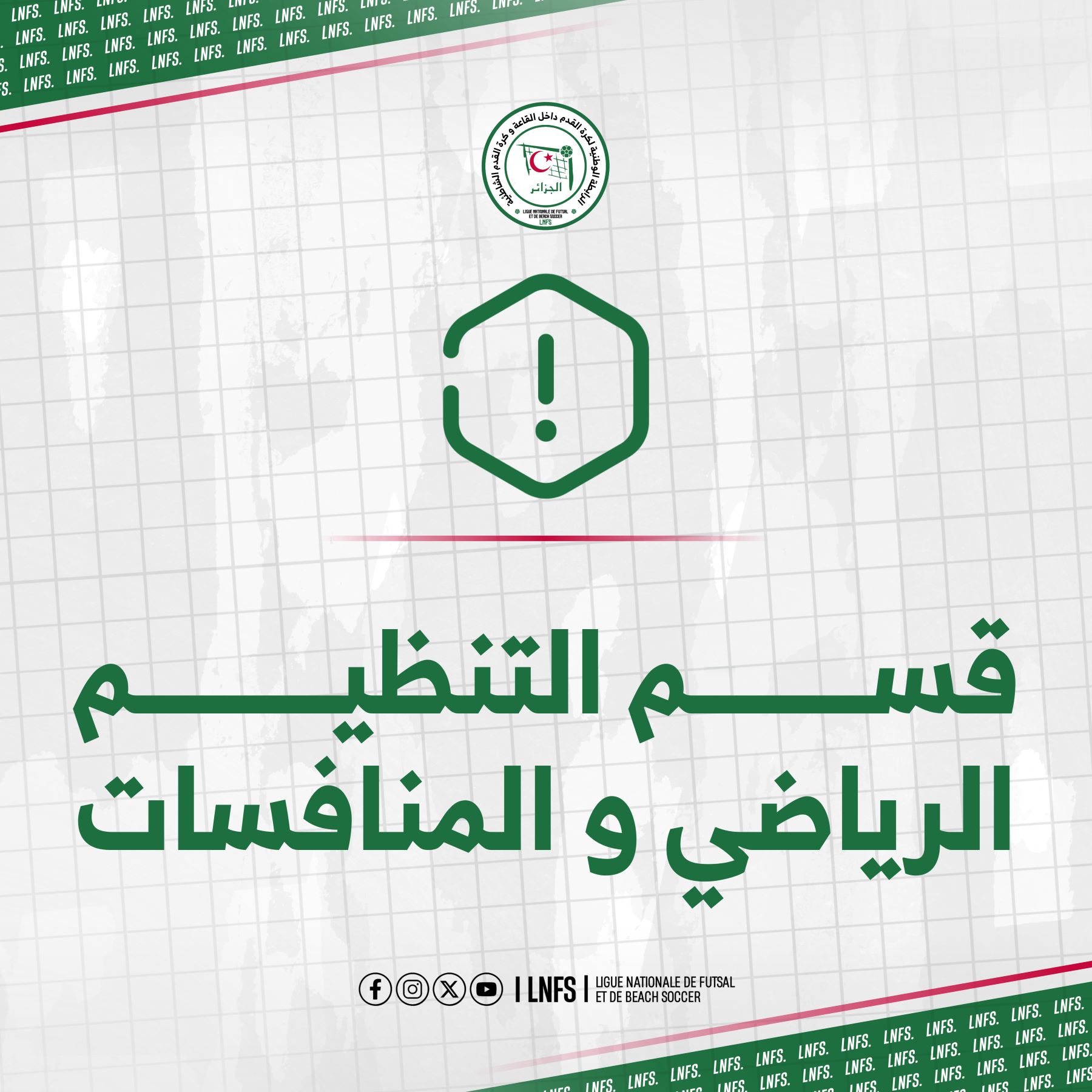 بناء على قرار قسم التنظيم الرياضي و المنافسات الصادر بالمحضر رقم 037 لجلسة الاثنين 06 أفريل 2026. حددت قائمة الفرق المتأهلة الى دورة اللقب لبطولة القسم الوطني الأول (رجال) على النحو الاتي