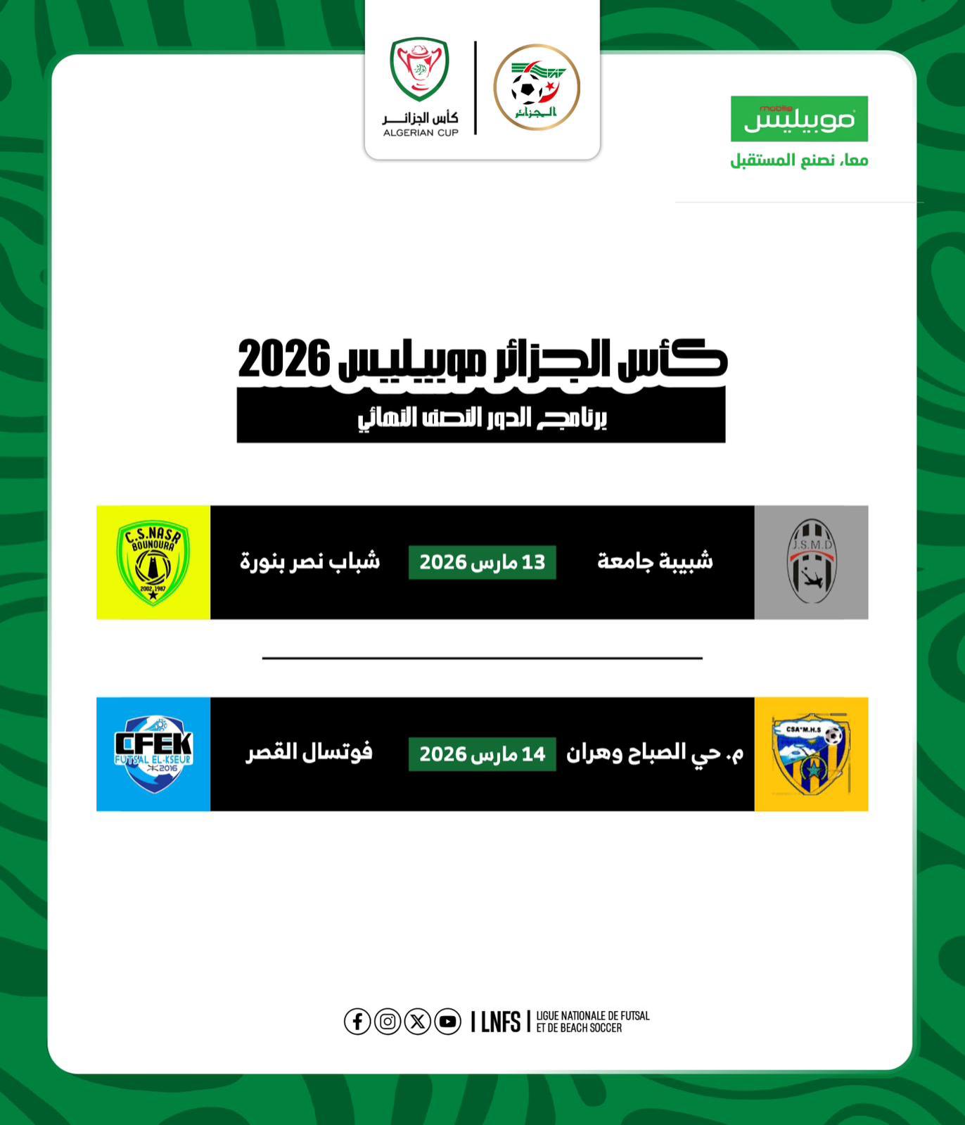 السبت 14 مارس 2026 (مستقبل حي الصباح وهران - فوتسال القصر)